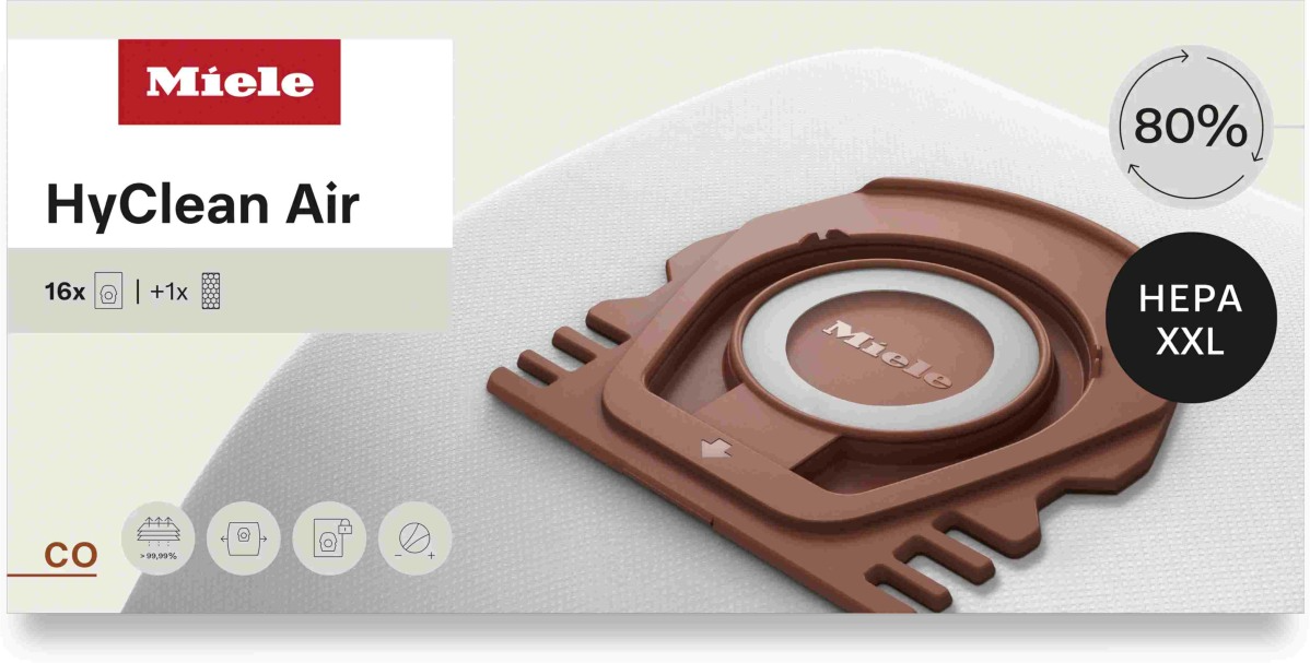 Miele HyClean FilterBags are perfectly engineered for your Miele vacuum cleaner to enable constantly high suction power. Years of development work and close collaboration between the Miele engineers have gone into ensuring that each HyClean bag noticeably improves suction power – throughout the entire service life of your appliance.