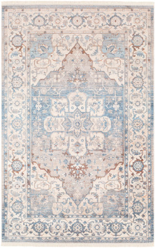 Surya Ephesians Blue, Aqua, Tan, Gray, Light Slate, Beige, Amber, Medium Brown, and Light Blue colored 5' x 7'9" Rug features 100% polyester, and machine woven and a medium pile.Read More